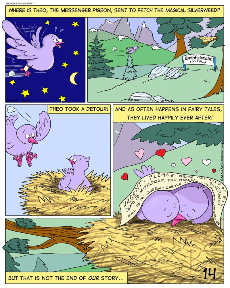 P11/14 Wo ist Theo, die Boten-Taube, die geschickt wurde, um das magische Silberkraut zu holen? Theo nahm einen Umweg! und wie so oft in Märchen, sie lebten glücklich bis ans Ende ihrer Tage! Aber das ist nicht das Ende unserer Geschichte...