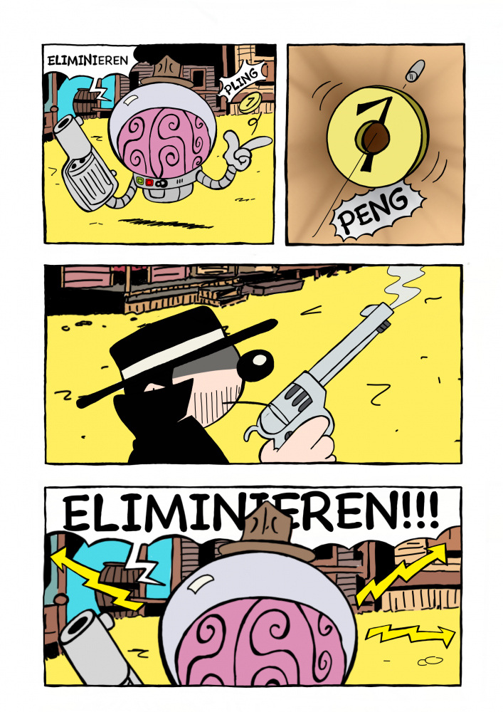 Beides sehr schön gezeichnet, aber die Highlander Referenz und der Dalek sind schon ganz geil.