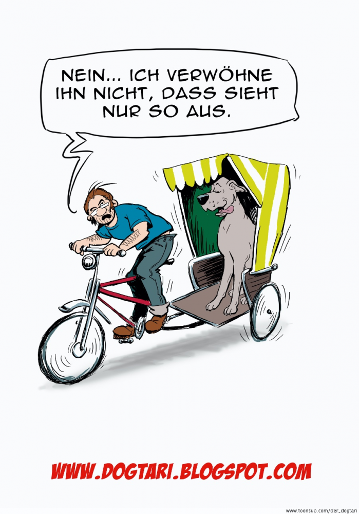 Wenn ich ihnwirklich verwöhnen würde, wäre es eine Stretch-Rikscha mit Futteranhänger und Saufschüsselhalterung mit Buttermilch. Ausserdem wären noch ein paar nette Doggenmädels an Bord