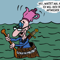 Das sind ja mal allerliebste Insider-Hommagen. Und das Wasser … das sieht mal wirklich so richtig nach Nordsee aus … Also: Ernstgemeintes Kompliment für brackes, rauhes Nordwasser! Und das niedliche Floss ist allemal geil, irgendwo zwischen Obelix und ganz zarten Kinderliedern …