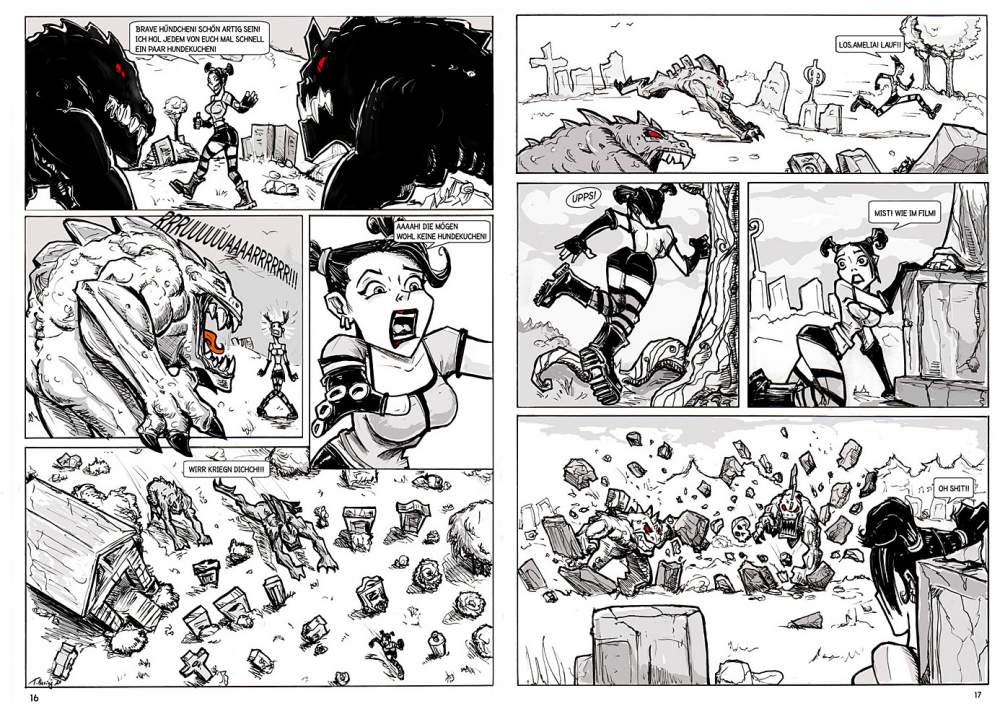 Das 1. Kapitel von Amelia ist fertig.Ich habe auch noch etwas Farbe hinzugefügt um die Seiten interessanter zu gestalten und hier und da den Kontrast zu erhöhen.