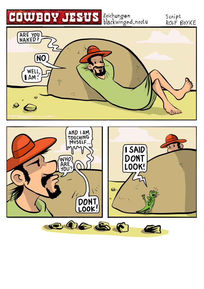 Schwer zu sagen, ob das jetzt blasphemisch ist oder nicht. Jesus als Cowboy ist jedenfalls sausymphatisch.