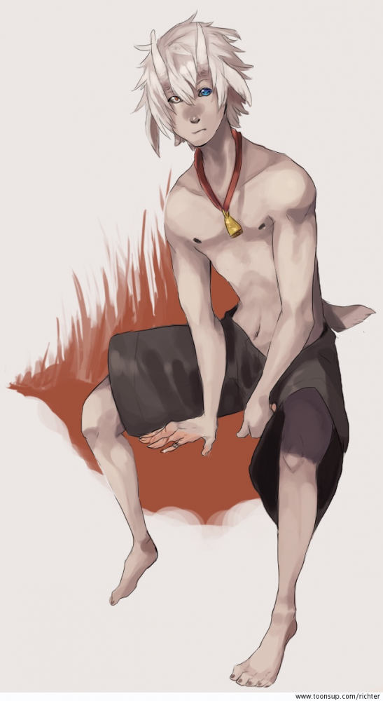 Strich und Farben rocken allerdings extrem. Bin genrell Fan deines Strichs in den letzten Zeichnungen, aber die rechte Hand der Figur hier könnte ich mir direkt einrahmen. Schön locker und fließend in Zeichnung und Coloration, da wird man als Betrachter echt süchtig nach, mehr davon!
