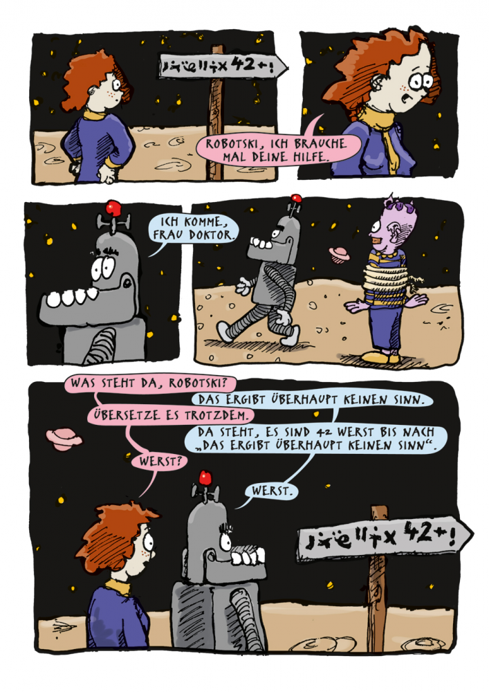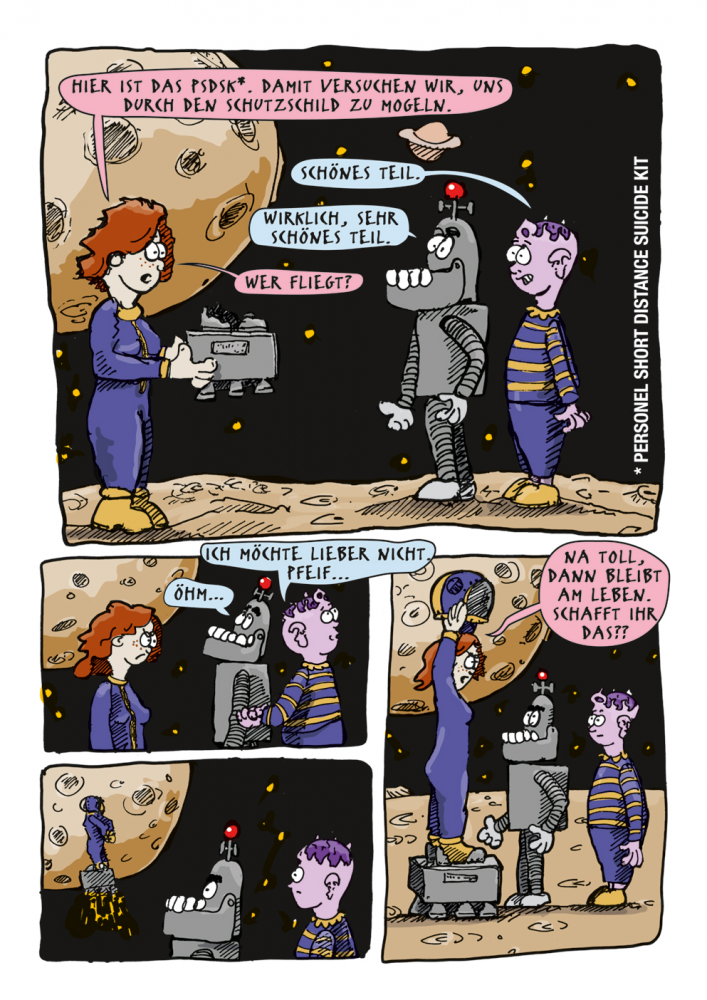 Und allgemein so ziemlich alles, was Comicpanel-Gestaltung bzw. das Layout hergibt, eingebaut, was ganz fein bei den Dialogen funktioniert. Klarer Fall für ein Super