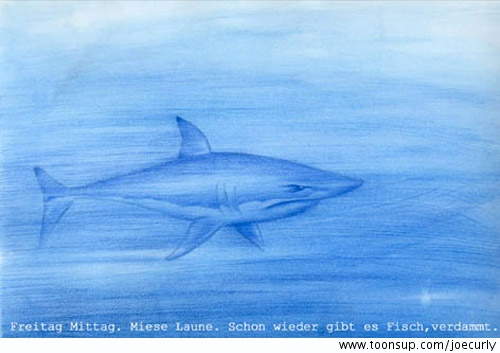 Und der Haifisch sieht auch so richtig muffelig aus. (Würde ich übrigens auch - habe nämlich eine Fischallergie )