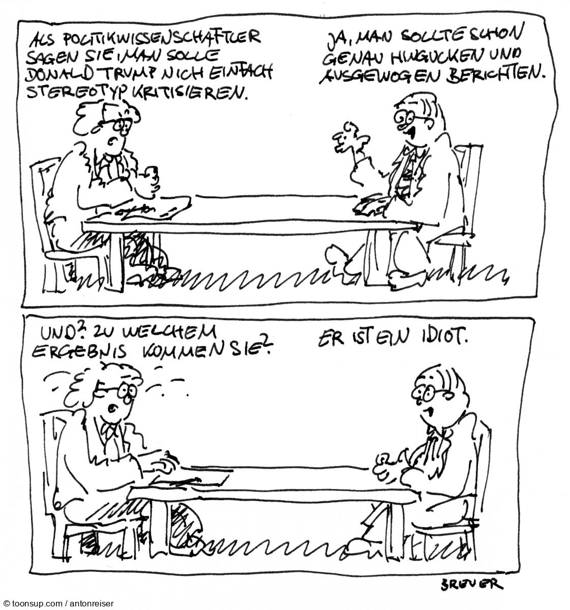 Ach, echt? Das fiel mir als Motto ein, als ich meine ersten Cartoons gezeichnet habe. Es passte einfach am besten, ein trocknes, desinteressiertes "Ach, echt?" - manchmal auch ein neugierieges, manchmal ein ungläubiges...